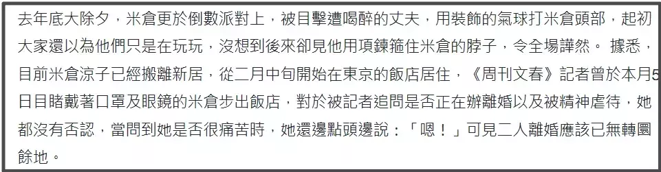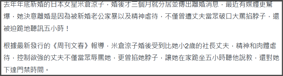2014年,米仓凉子闪婚嫁给小两岁的素人,结婚3个月就遭到家暴,还不是一般家暴。